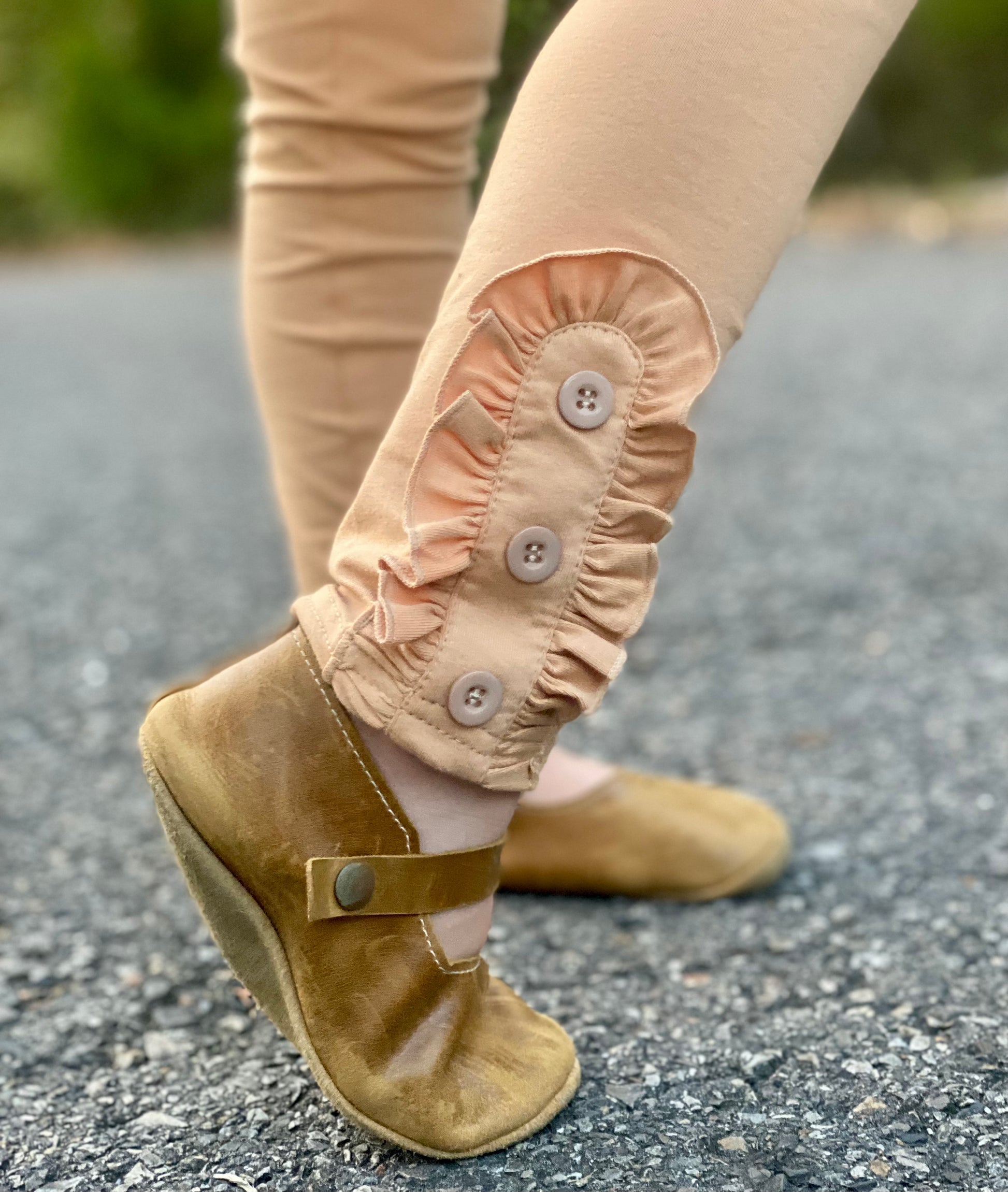 These leggings are a staple! They are a perfect piece to add to your wardrobe. The ruffle and button detail on the side adds such a cute touch.