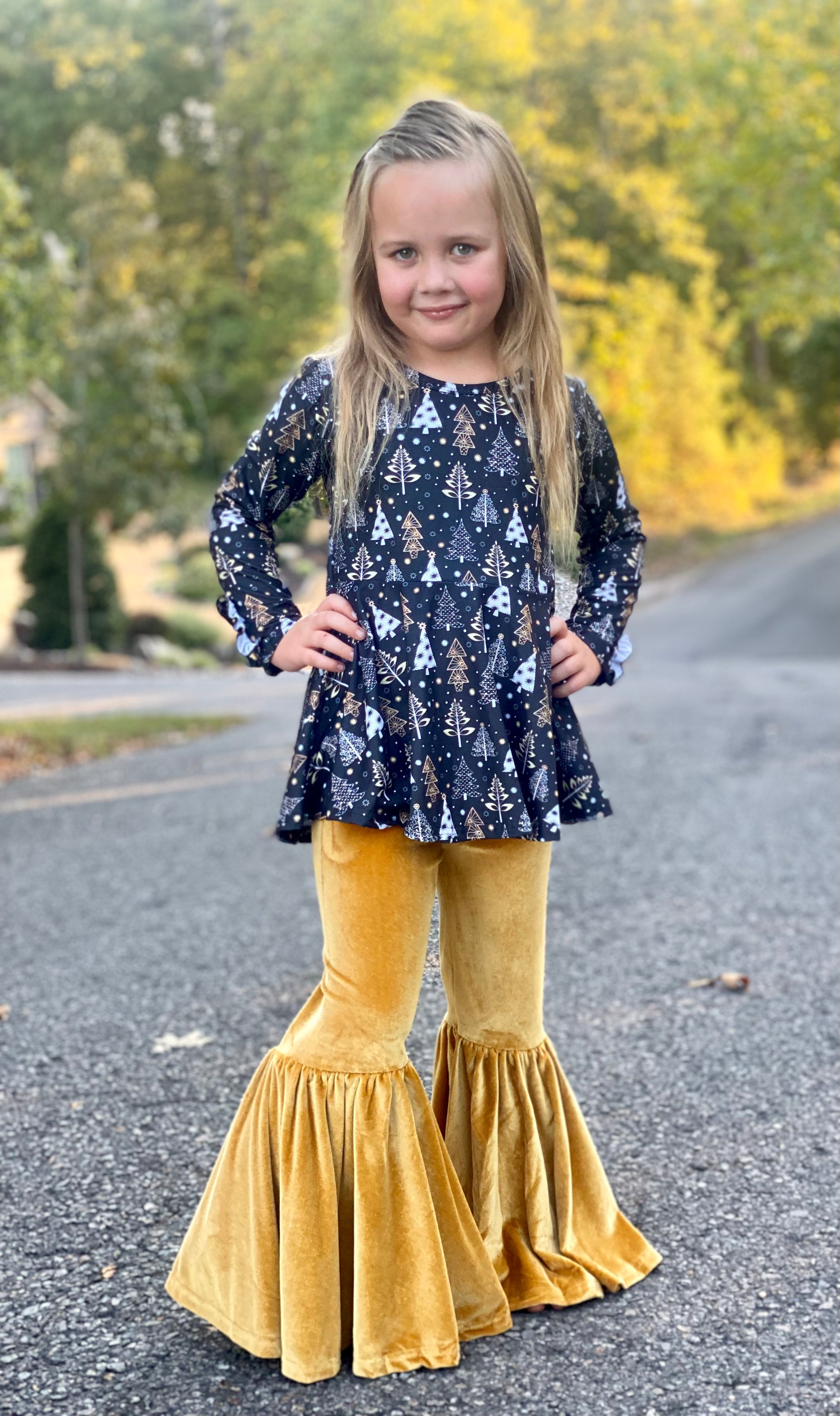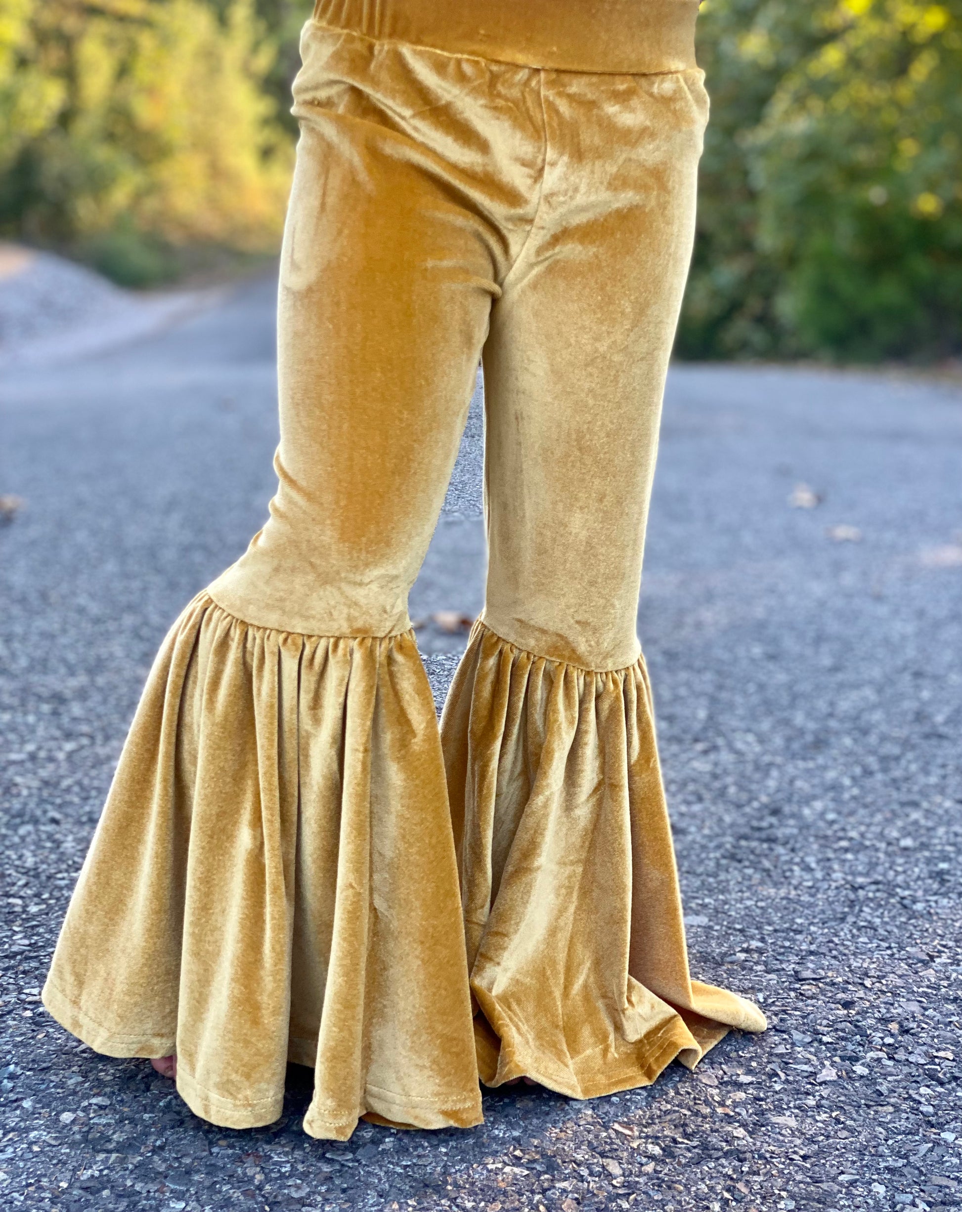 She's gonna be ringing in the holidays in style with these golden velvet bell bottoms! These super-sassy pants are perfect for your little diva's Christmas and New Year's gatherings. And with their velvety fabric, she's sure to have a jingle-jangle good time!