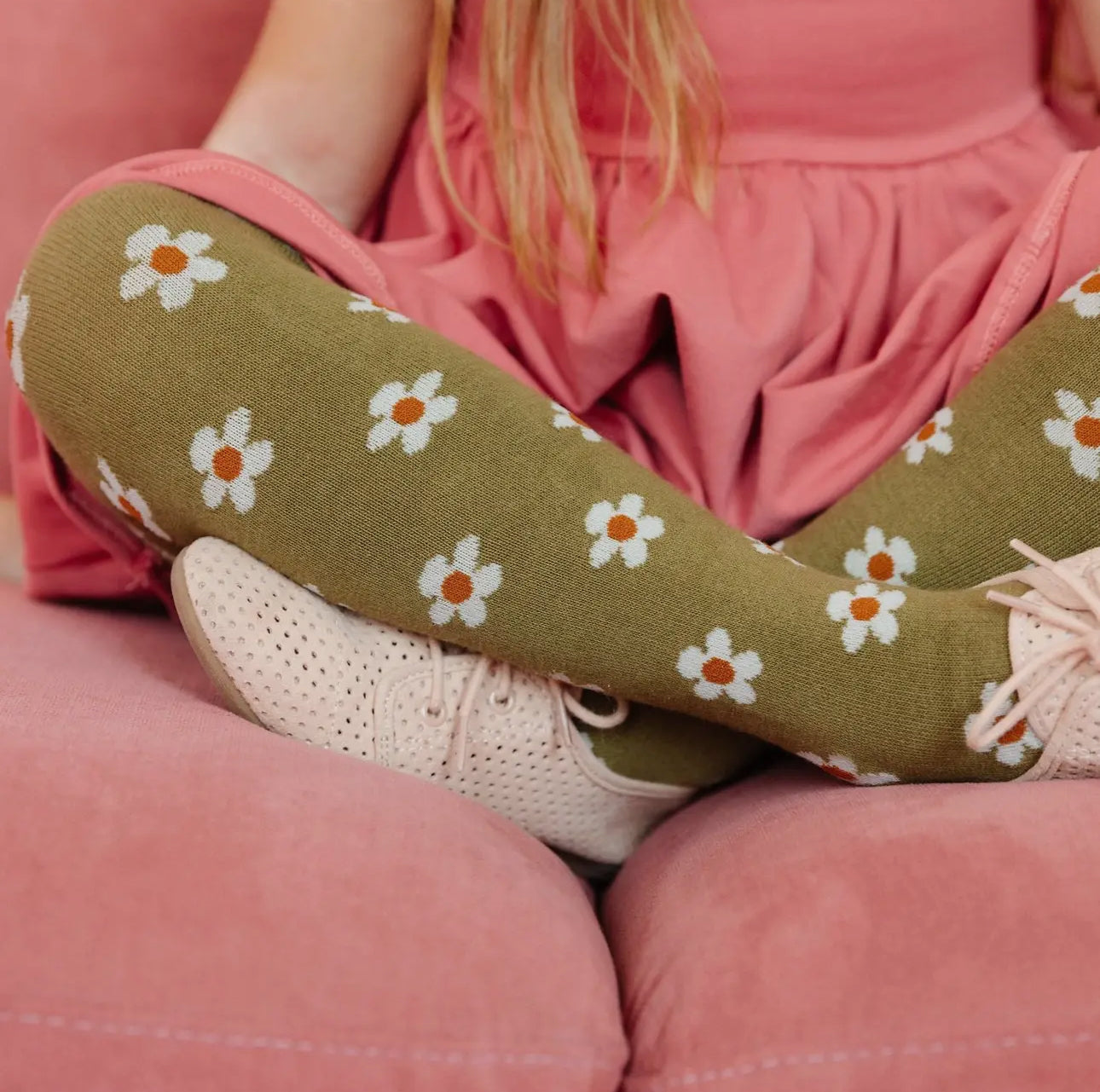 Add some flower power to your little one's wardrobe with our Girls Olive Floral Knit Tights! Featuring a delicate white floral design on a trendy olive background, these stockings are perfect for fall. Get your girl ready to slay the fashion game with these stylish and playful tights!