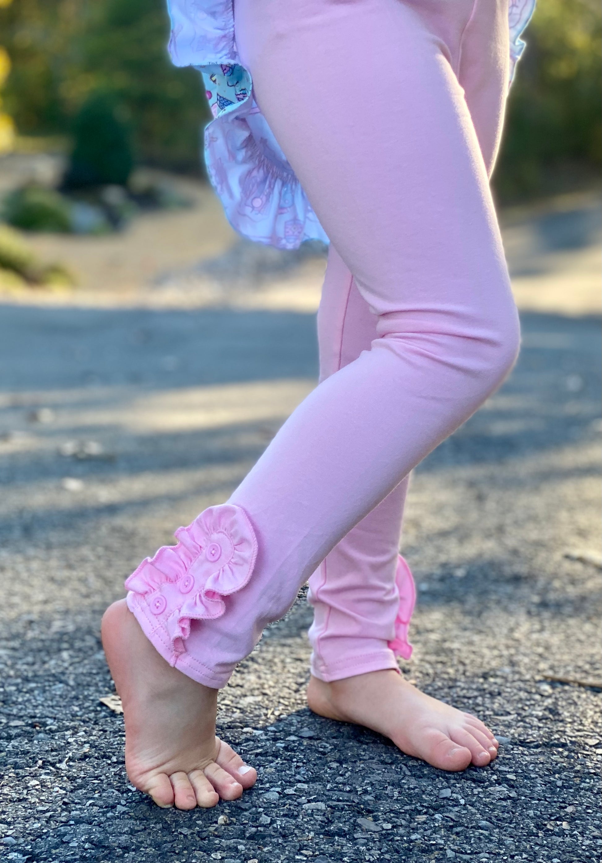 Girls Pink Ruffle and Button Leggings