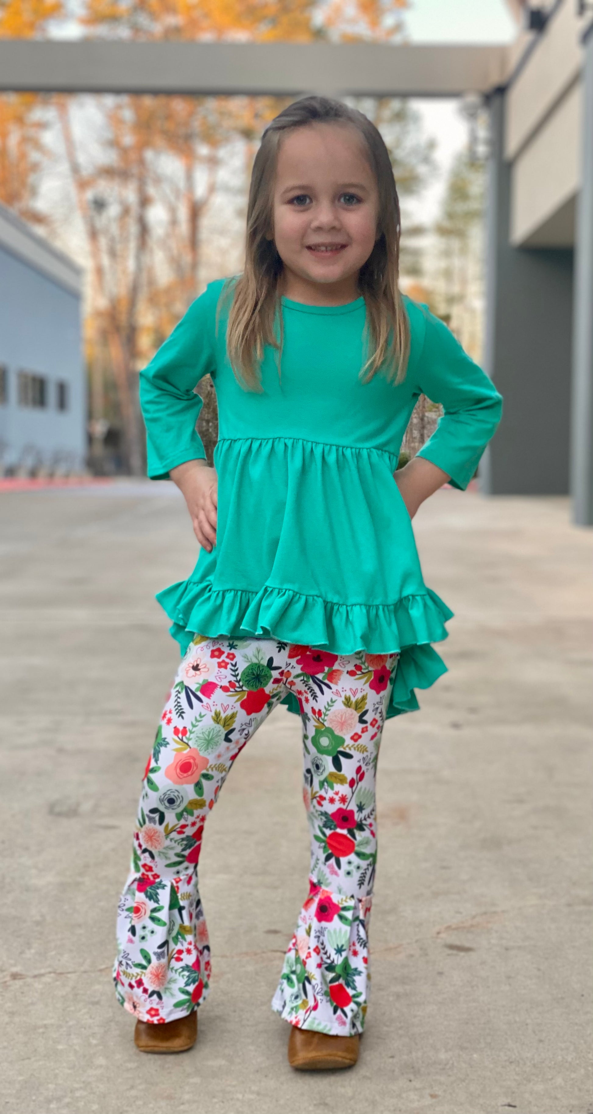 Girls Spring Floral Bell Bottoms