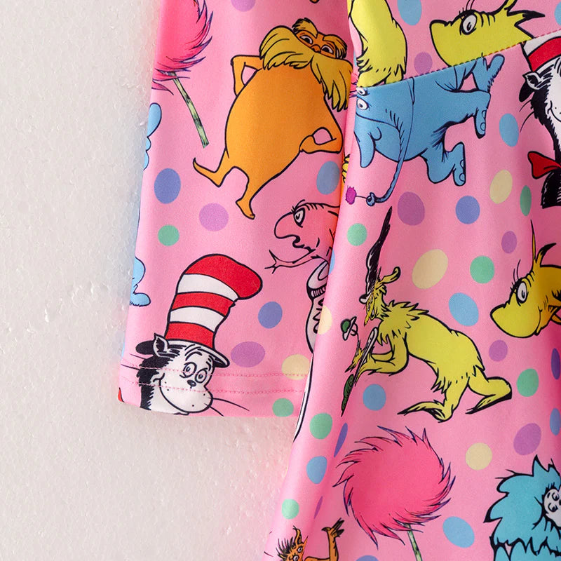 This character dress is perfect for any fun-loving fashionista! With its playful print and lightweight design, it's sure to keep her stylish and comfortable all season long. Available now!