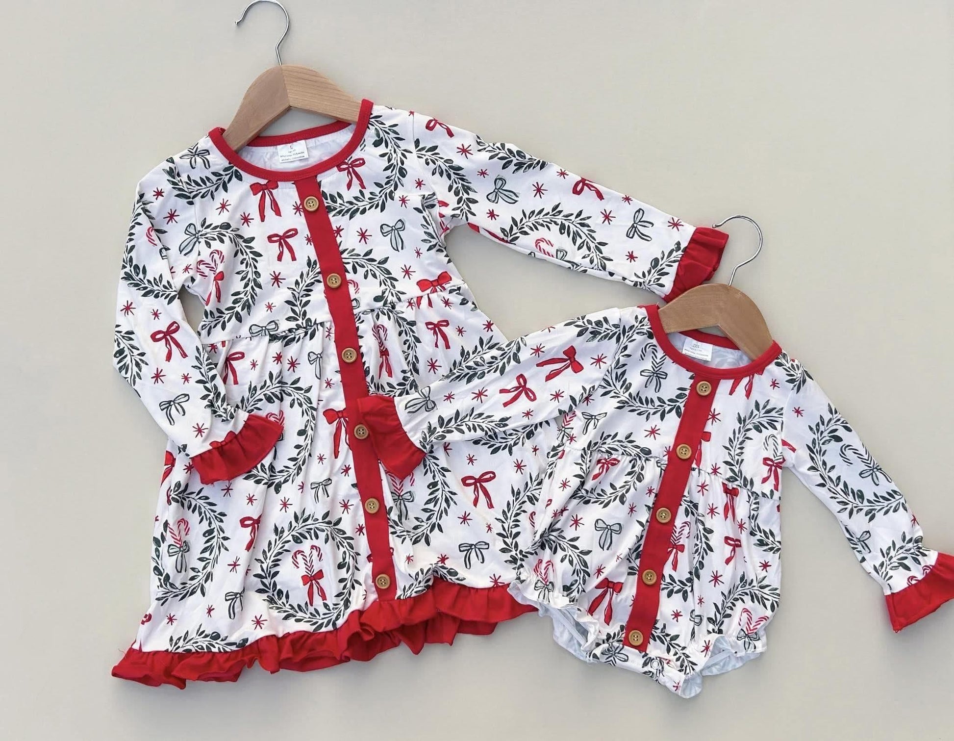 Get your little girl ready for the holiday season with our Pre-order Christmas Sibling Set! Available in two stylish options, each set features a beautiful Christmas print and button details down the center. The ruffle details add an extra touch of charm. Perfect for festive family photos and gatherings. Order now to ensure availability.