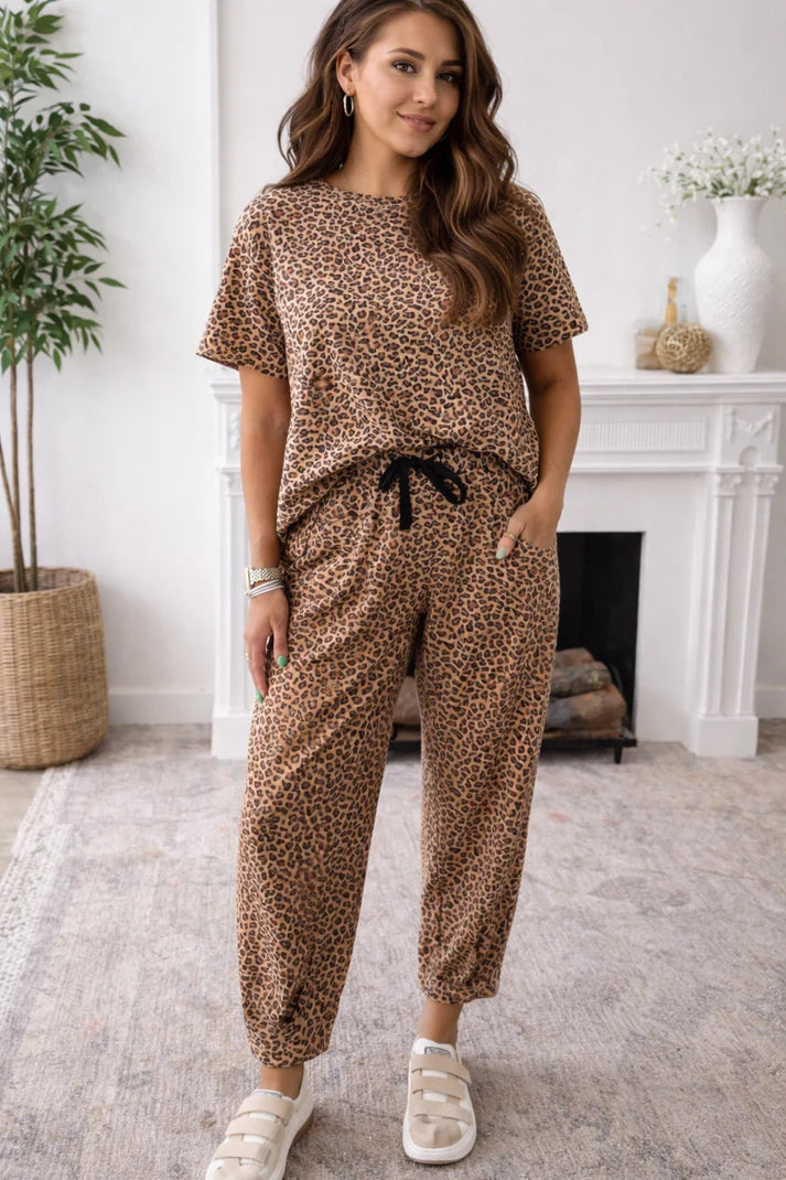Elevate your wardrobe with our Leopard Barrel Loose Set FB. This set includes a casual tee and relaxed pants, perfect for any body shape. Made with fine fabric, you'll feel comfortable and stylish all day. Embrace your wild side with this must-have addition to your wardrobe.